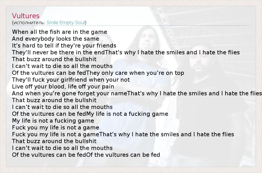 Fuck you my life is not a gameThat's why I hate the smiles and I hate the flies
