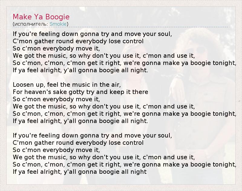 А как ты думаешь, о чем песня "Make Ya Boogie" ?