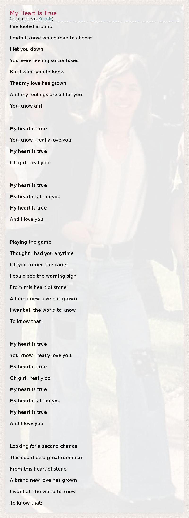 А как ты думаешь, о чем песня "My Heart Is True" ?