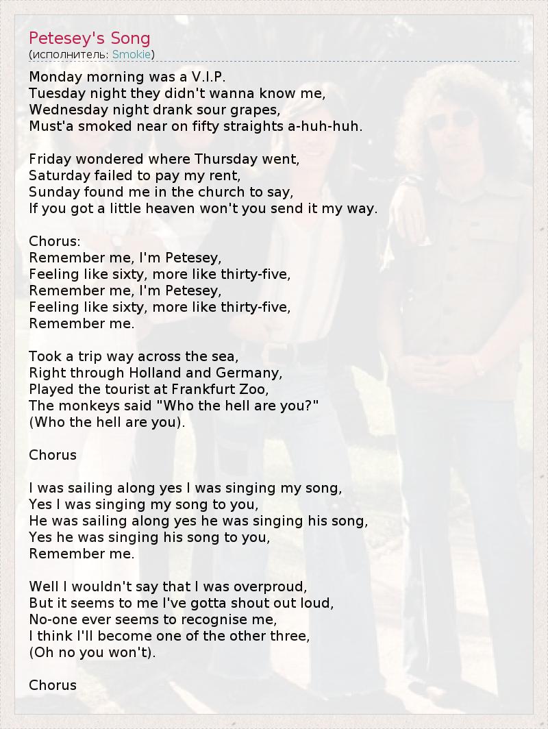 А как ты думаешь, о чем песня "Petesey's Song" ?