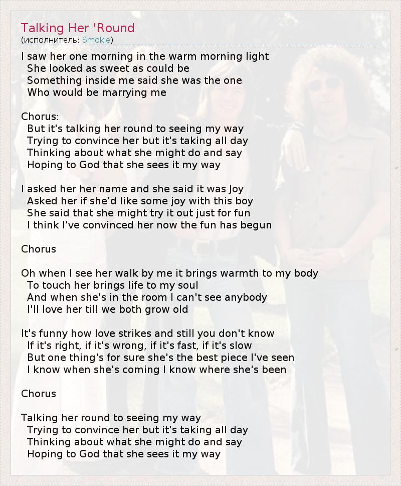 А как ты думаешь, о чем песня "Talking Her 'Round" ?