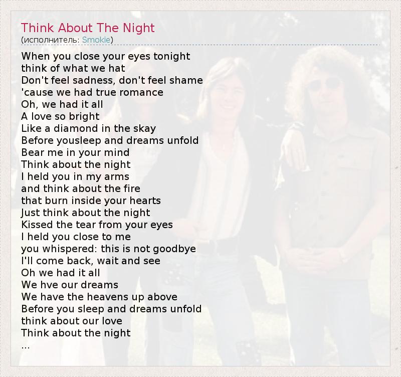 А как ты думаешь, о чем песня "Think About The Night" ?