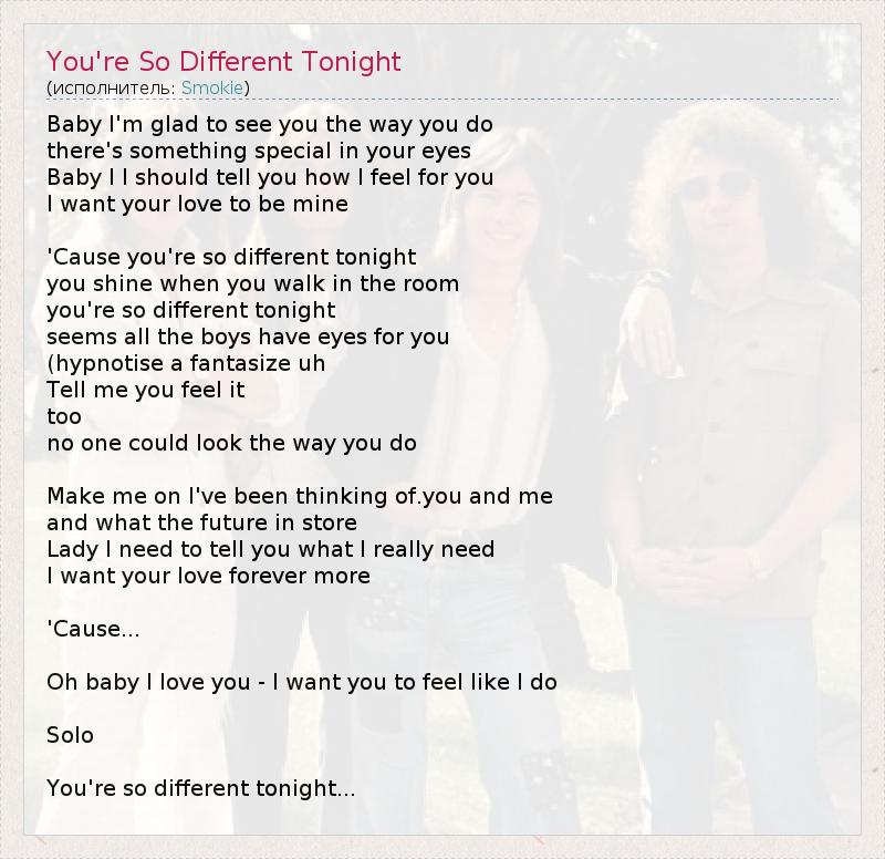 ГлавнаяИсполнителиSmokieYou're So Different Tonight