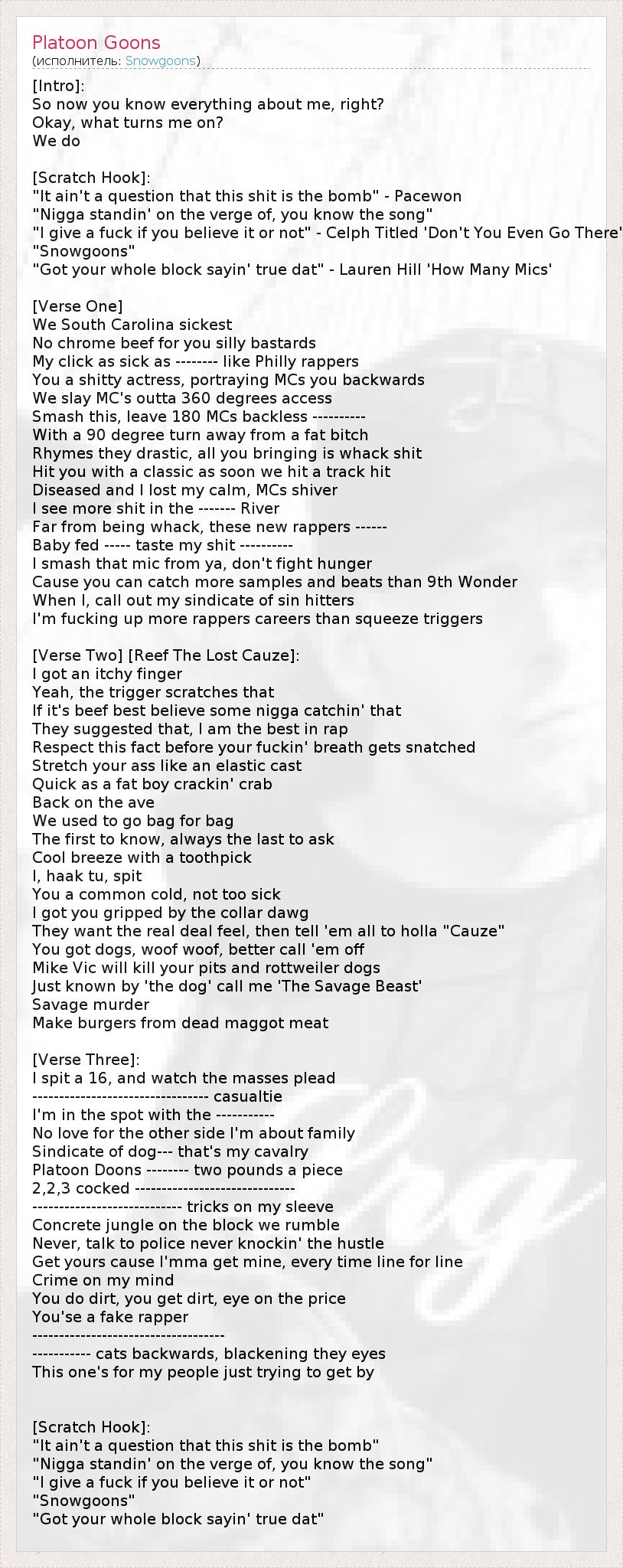 А как ты думаешь, о чем песня "Platoon Goons" ?