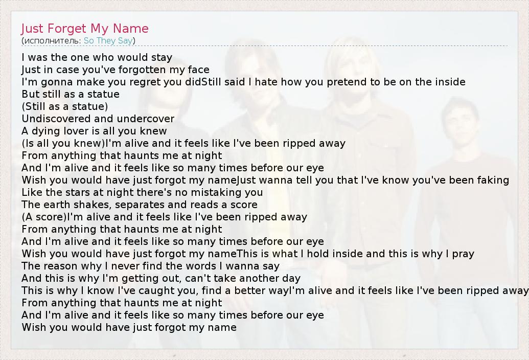 А как ты думаешь, о чем песня "Just Forget My Name" ?