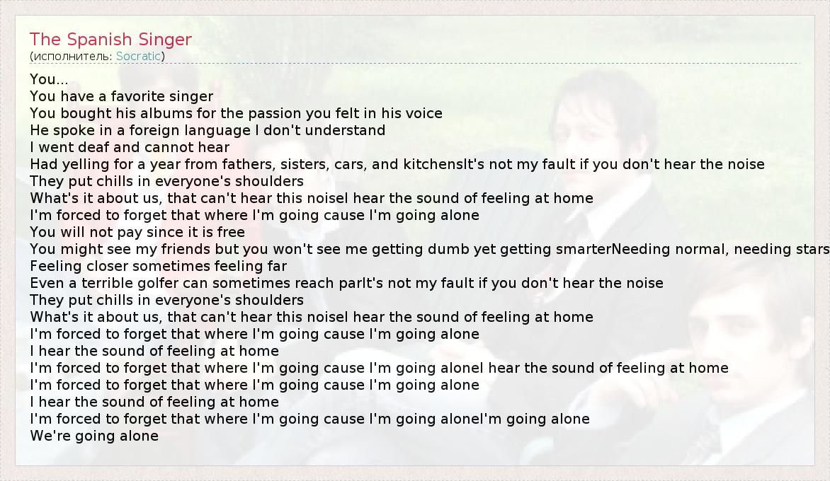 А как ты думаешь, о чем песня "The Spanish Singer" ?