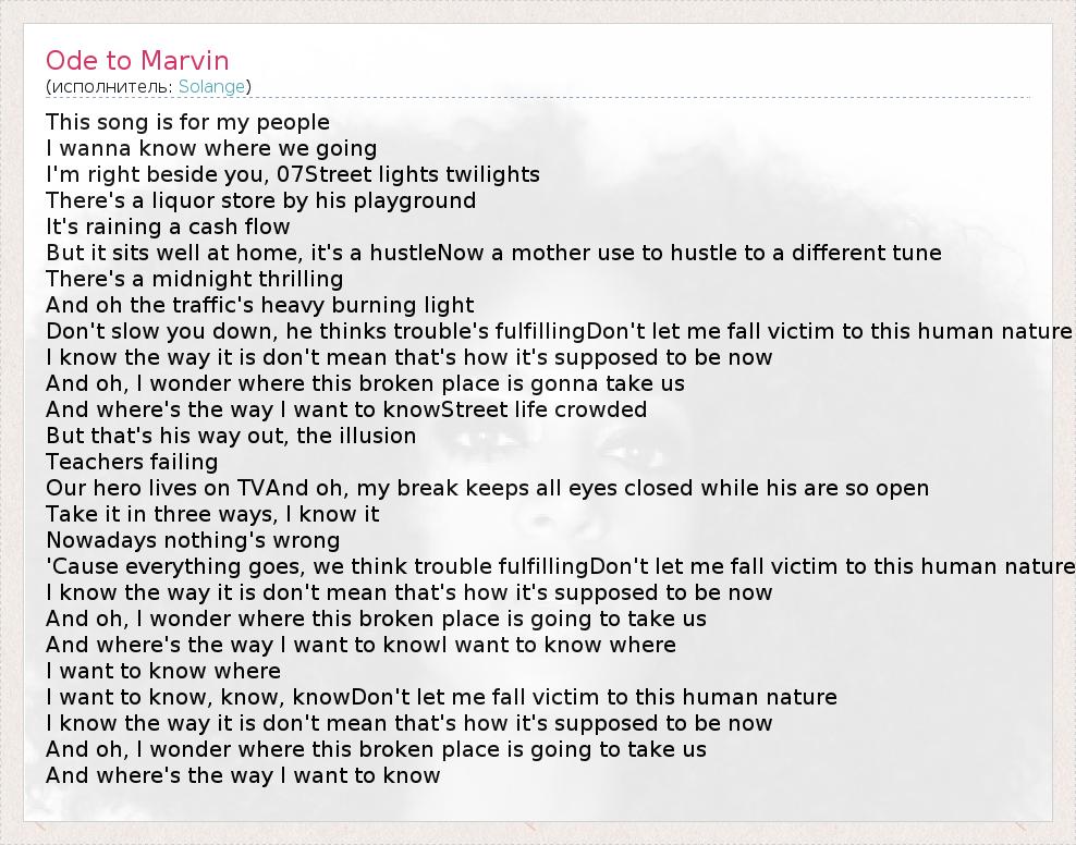 А как ты думаешь, о чем песня "Ode to Marvin" ?