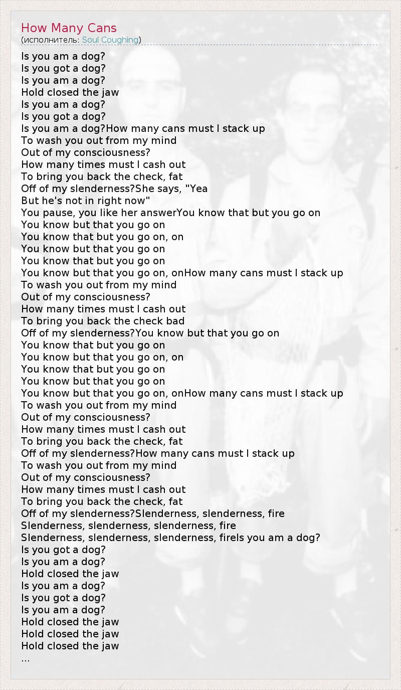 А как ты думаешь, о чем песня "How Many Cans" ?