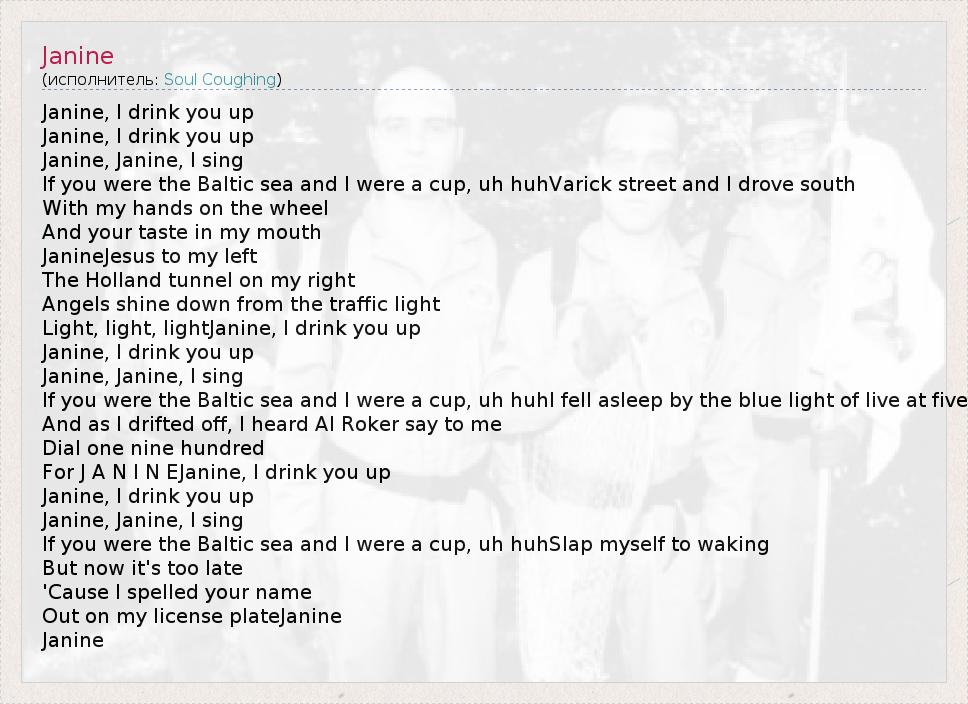 Это интересно:Soul Coughing (переводится с английского как «кашель души») - альтернативная рок-группа из Нью-Йорка. Группа имела скромный успех в течение второй половины 90-х. Soul Coughing создала преданную армию фанатов и добыла в значительной степени положительные отзывы критиков. Стив Хьюи с allmusic.com описывает Soul Coughing как одну из самых уникальных культовых групп 90-х: «Ведомое поэтическим потоком сознания лидера... продолжение