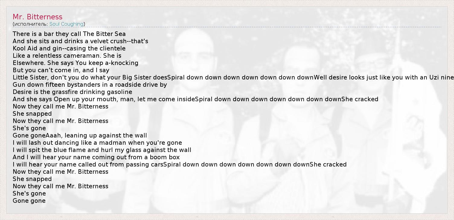 А как ты думаешь, о чем песня "Mr. Bitterness" ?