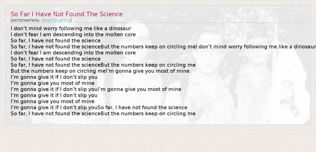 ГлавнаяИсполнителиSoul CoughingSo Far I Have Not Found The Science