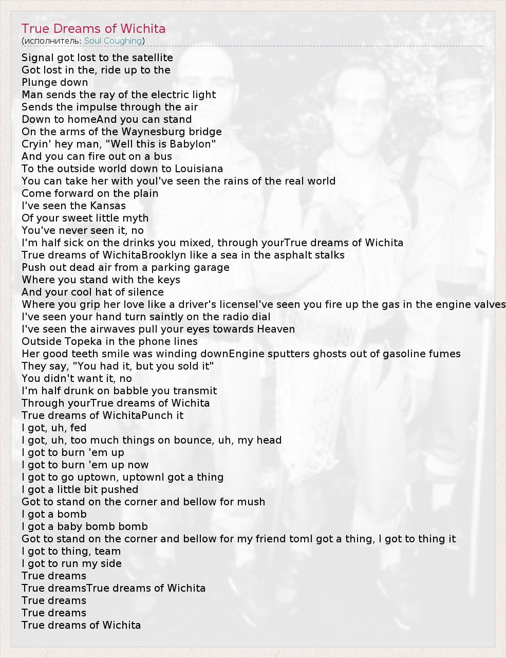А как ты думаешь, о чем песня "True Dreams of Wichita" ?
