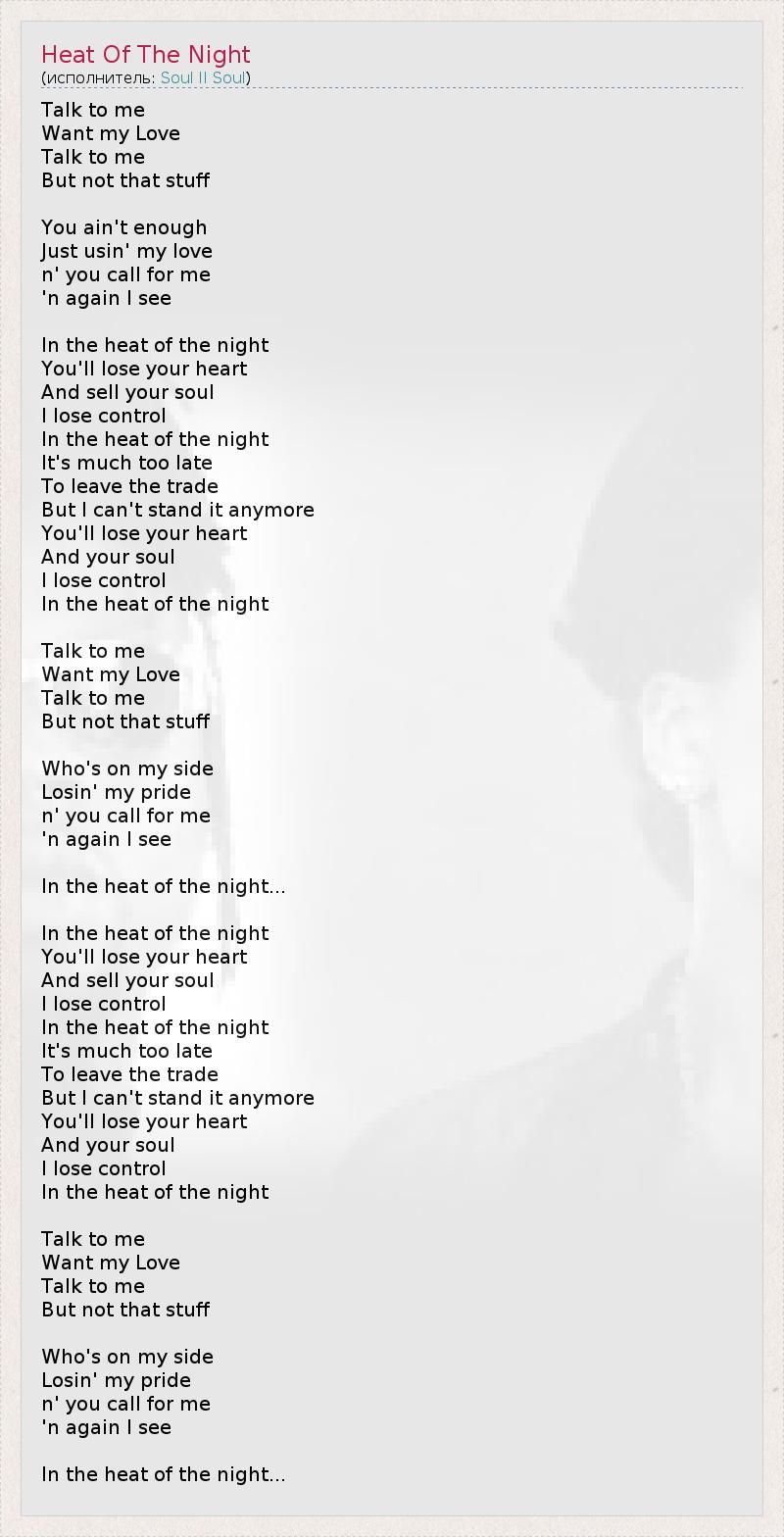 А как ты думаешь, о чем песня "Heat Of The Night" ?