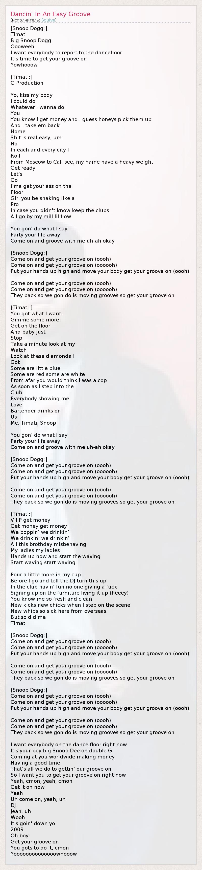 А как ты думаешь, о чем песня "Dancin' In An Easy Groove" ?