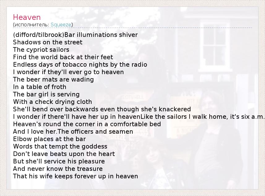 Это интересно:Squeeze — английская группа новой волны, в творчестве которой мотивы панк-, паб-, глэм- и арт-рока соеднились с классической поп-традицией 60-х годов. Крис Диффорд и Гленн Тилбрук (первый из них писал тексты, второй — музыку) никогда не скрывали того, что своими кумирами считают Леннона и Маккартни.История группы началась, когда Крис Диффорд (родился 11 апреля 1954 года) поместил на витрине... продолжение