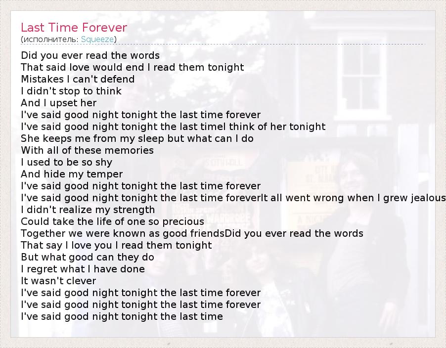 А как ты думаешь, о чем песня "Last Time Forever" ?