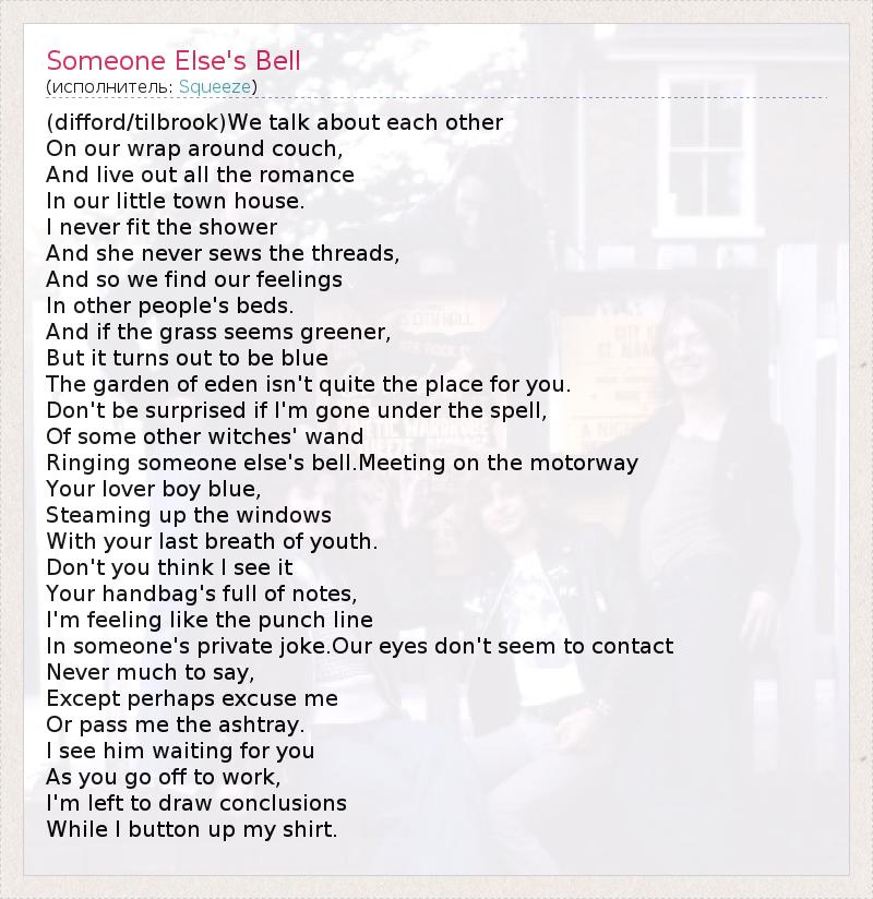 А как ты думаешь, о чем песня "Someone Else's Bell" ?