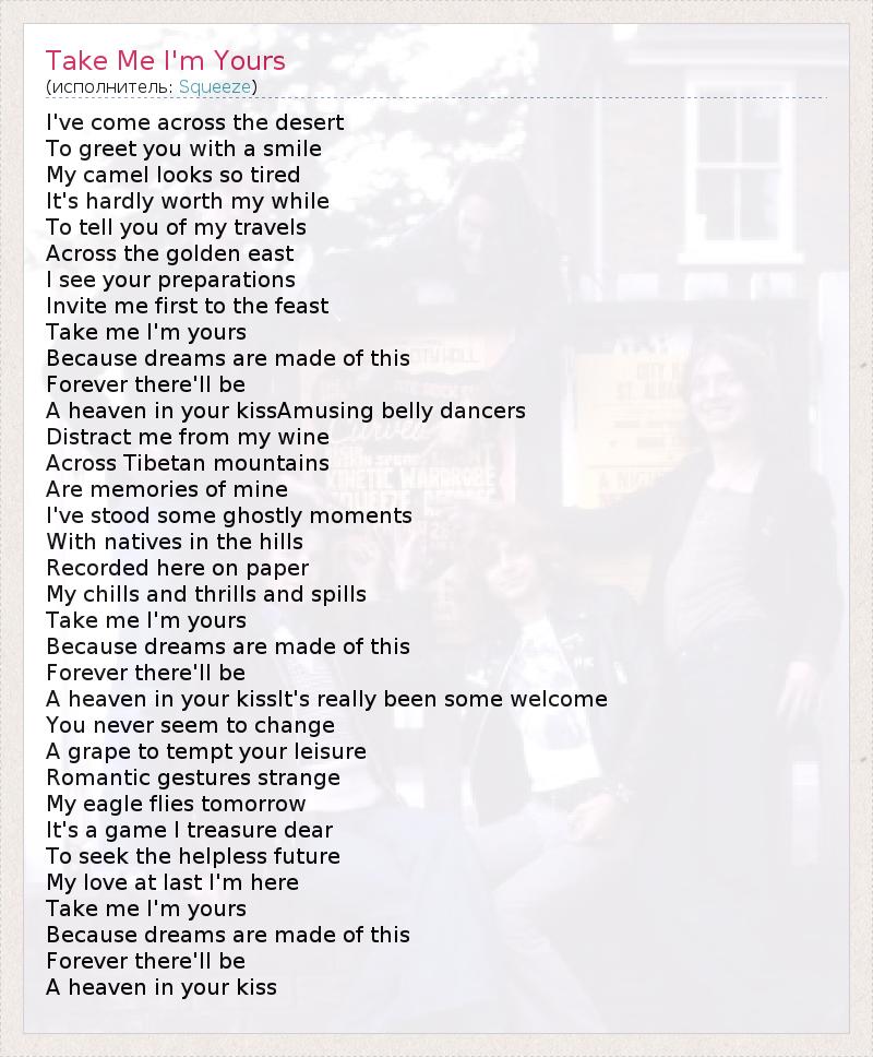 А как ты думаешь, о чем песня "Take Me I'm Yours" ?