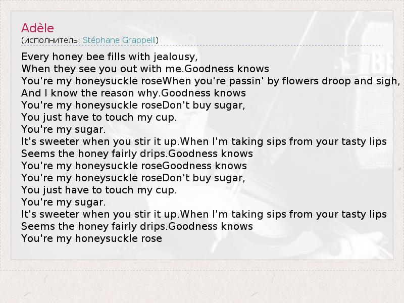 А как ты думаешь, о чем песня "Adèle" ?
