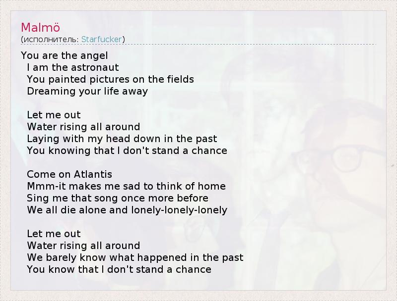 А как ты думаешь, о чем песня "Malmö" ?