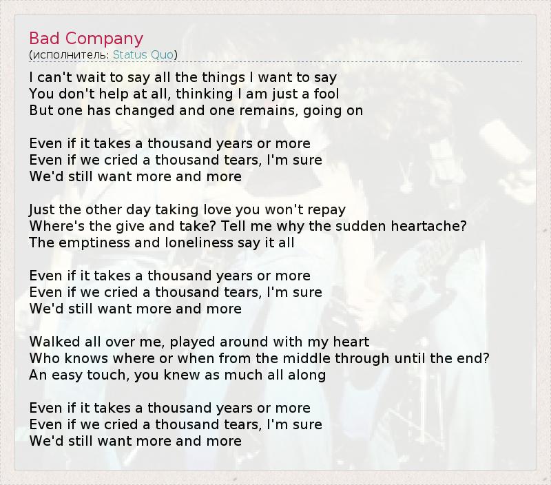 А как ты думаешь, о чем песня "Bad Company" ?