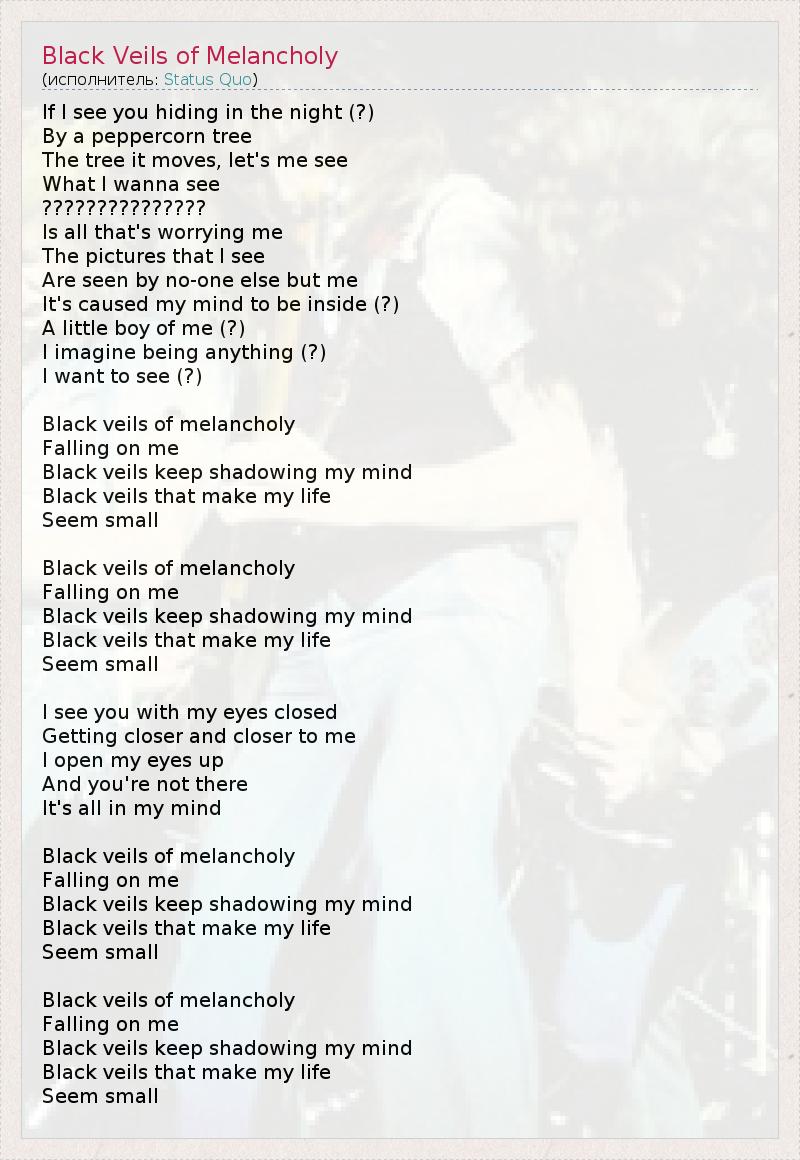 ГлавнаяИсполнителиStatus QuoBlack Veils of Melancholy