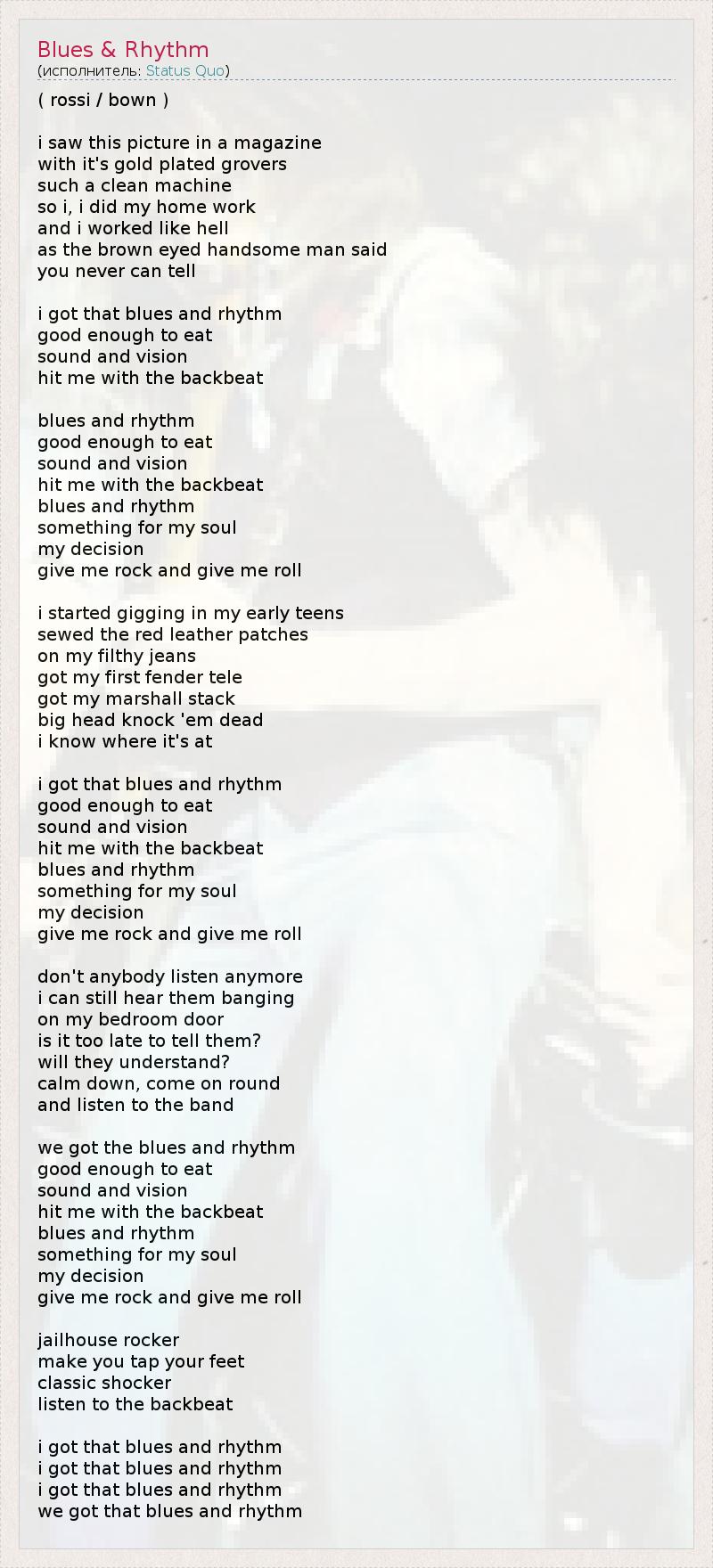 А как ты думаешь, о чем песня "Blues & Rhythm" ?
