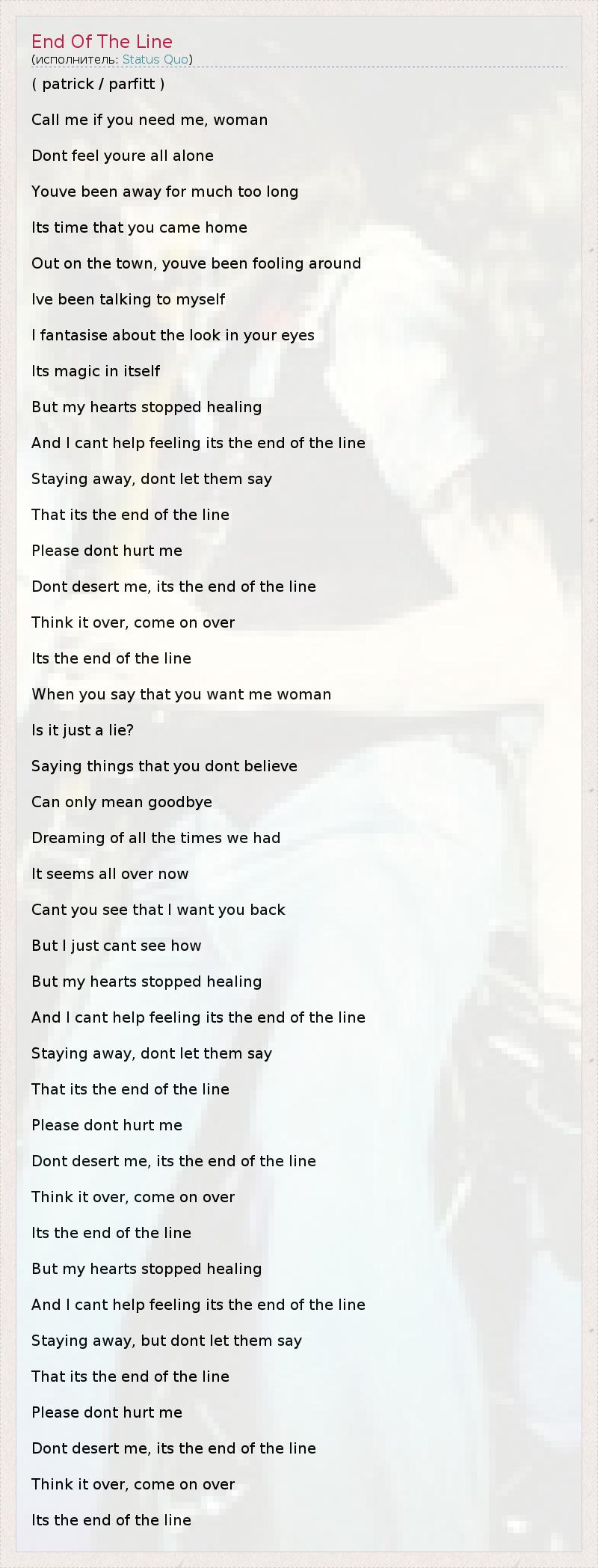 А как ты думаешь, о чем песня "End Of The Line" ?