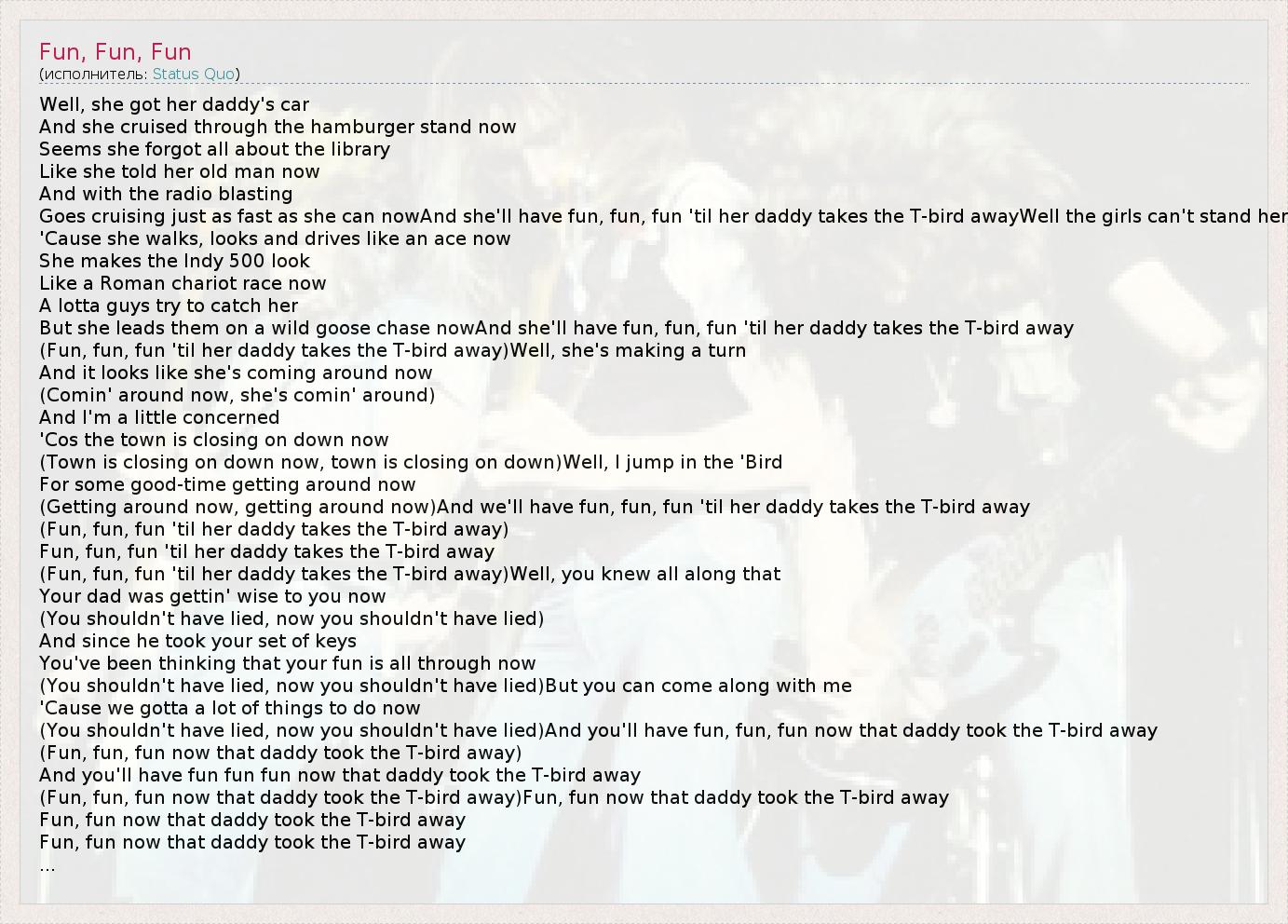 А как ты думаешь, о чем песня "Fun, Fun, Fun" ?