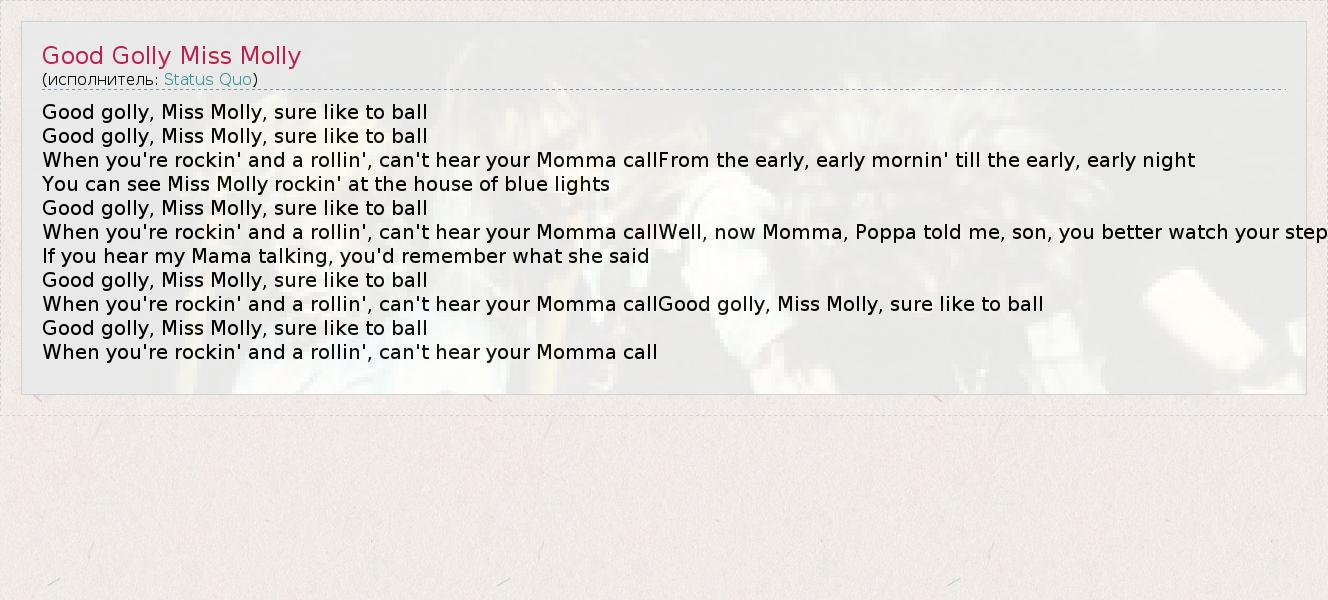 А как ты думаешь, о чем песня "Good Golly Miss Molly" ?