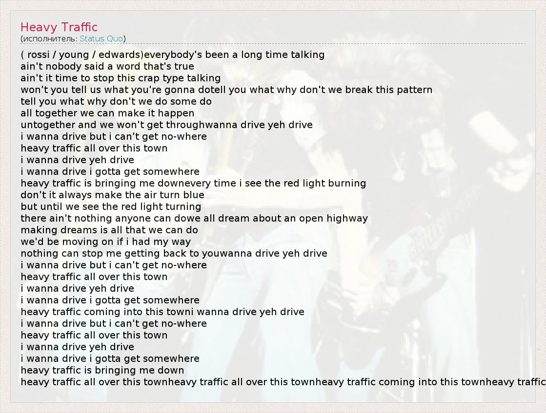 А как ты думаешь, о чем песня "Heavy Traffic" ?
