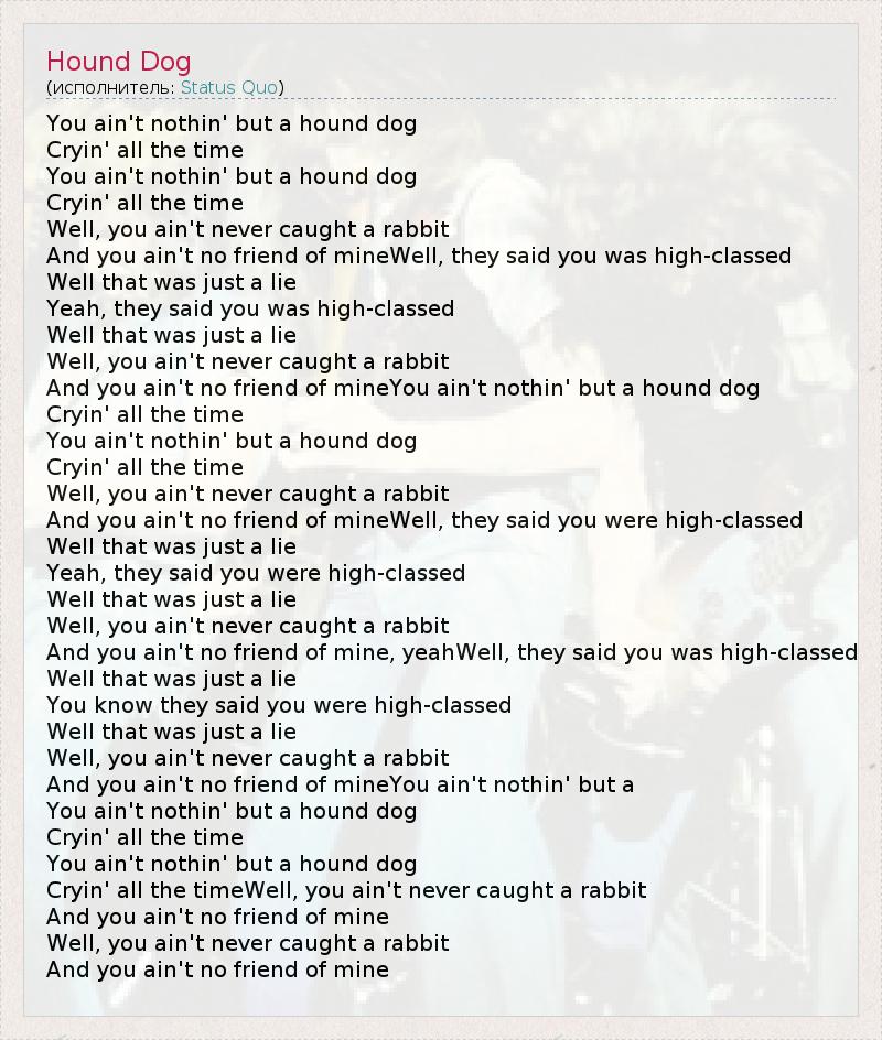And you ain't no friend of mineYou ain't nothin' but a hound dog