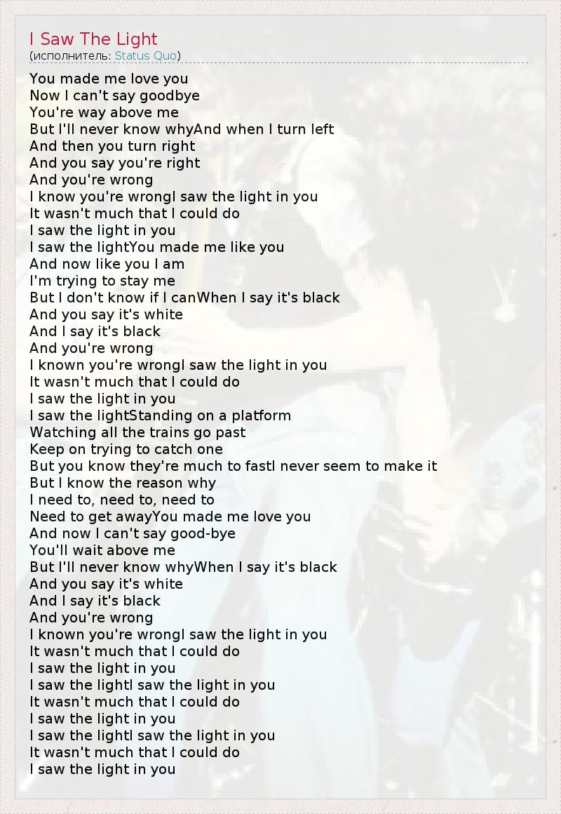 А как ты думаешь, о чем песня "I Saw The Light" ?