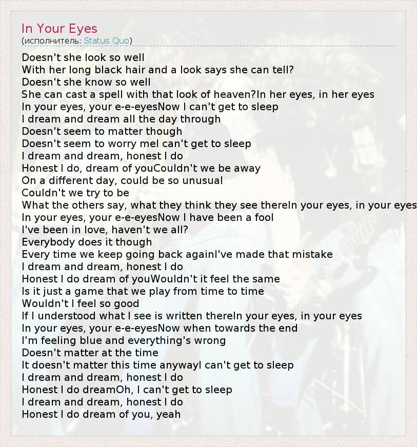 In your eyes, your e-e-eyesNow I can't get to sleep