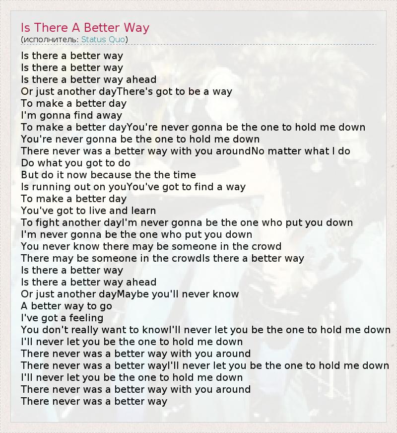 А как ты думаешь, о чем песня "Is There A Better Way" ?