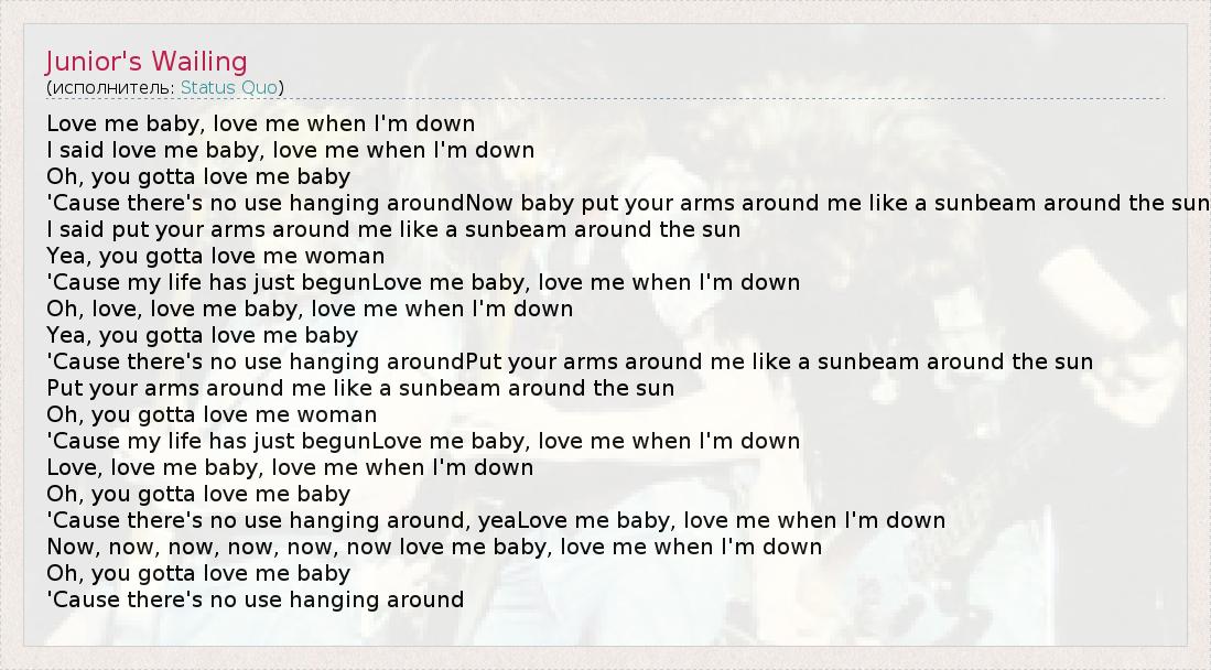 А как ты думаешь, о чем песня "Junior's Wailing" ?