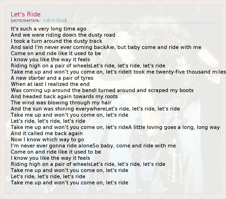 А как ты думаешь, о чем песня "Let's Ride" ?
