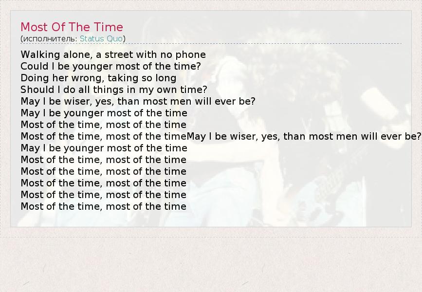 А как ты думаешь, о чем песня "Most Of The Time" ?