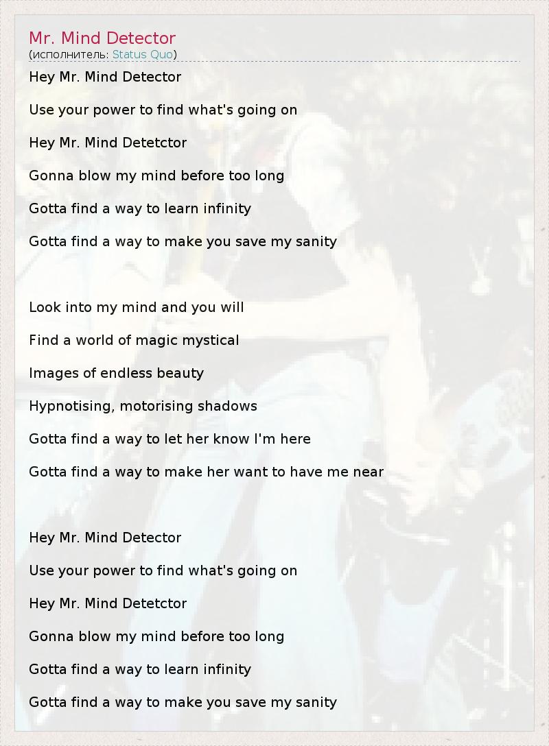 А как ты думаешь, о чем песня "Mr. Mind Detector" ?