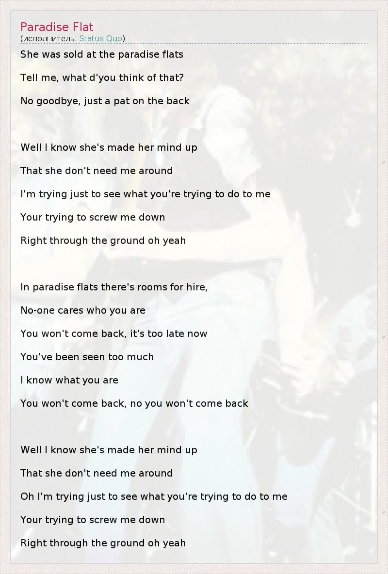 А как ты думаешь, о чем песня "Paradise Flat" ?