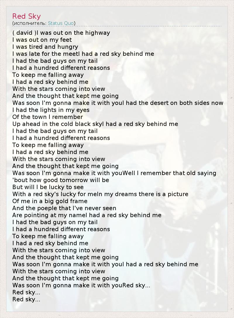 Это интересно:Status Quo — популярная и коммерчески успешная английская рок-группа. Основана бас-гитаристом Аланом Ланкастером и лидер-гитаристом Фрэнсисом Росси в 1962 году в Лондоне. Их музыка базируется на стыке рок-н-ролла, ритм-энд-блюза и буги-вуги в сочетании с имиджем простых парней, незатейливыми песнями и прекрасными мелодиями. Это и обеспечило Status quo успех во всём мире. Их самый известный хит «In... продолжение