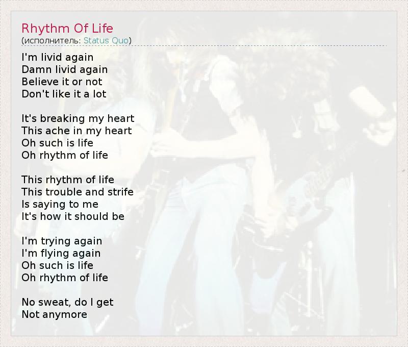 А как ты думаешь, о чем песня "Rhythm Of Life" ?