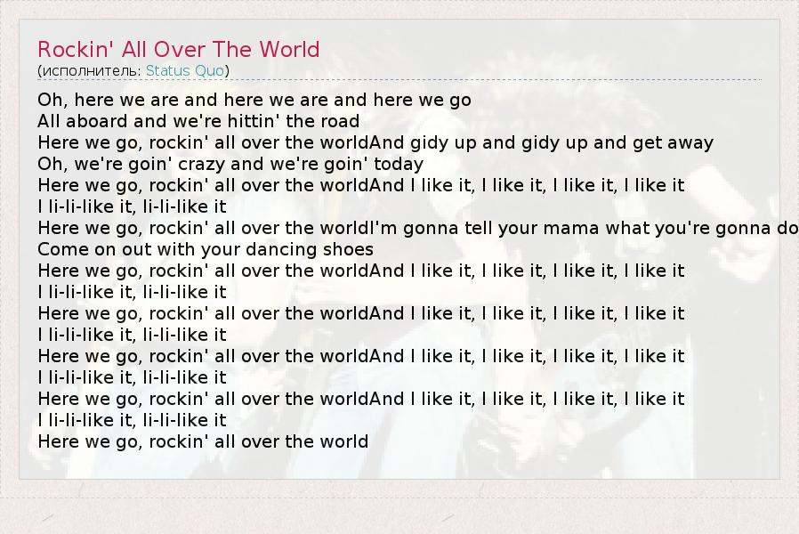А как ты думаешь, о чем песня "Rockin' All Over The World" ?