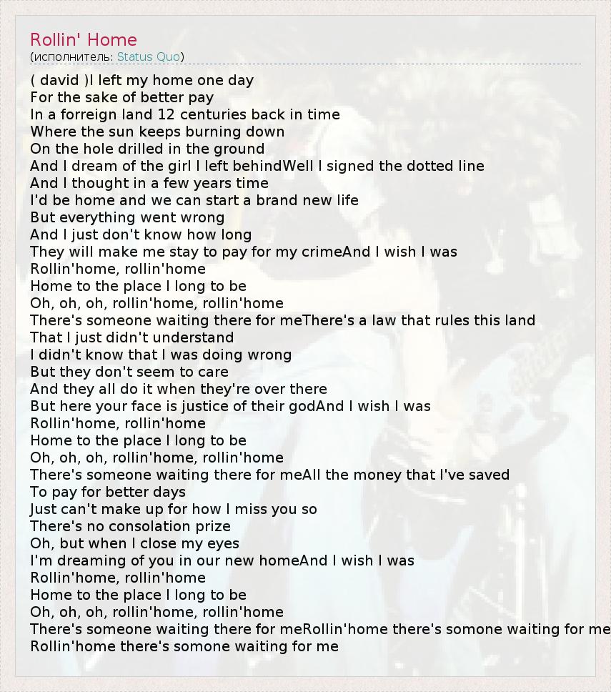 А как ты думаешь, о чем песня "Rollin' Home" ?