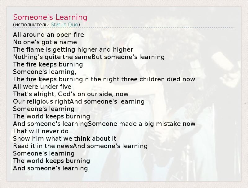 А как ты думаешь, о чем песня "Someone's Learning" ?
