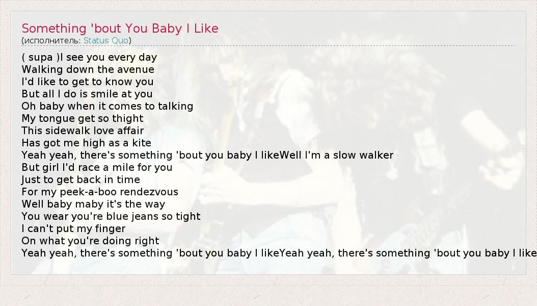 ГлавнаяИсполнителиStatus QuoSomething 'bout You Baby I Like