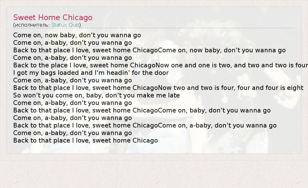 А как ты думаешь, о чем песня "Sweet Home Chicago" ?