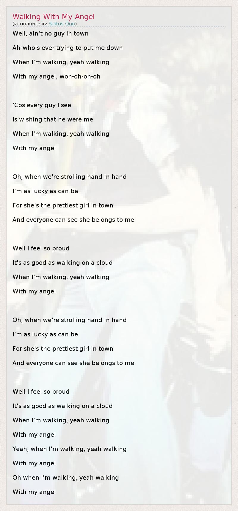 А как ты думаешь, о чем песня "Walking With My Angel" ?