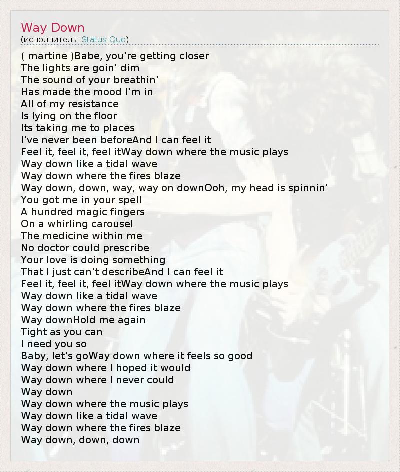 Это интересно:Status Quo — популярная и коммерчески успешная английская рок-группа. Основана бас-гитаристом Аланом Ланкастером и лидер-гитаристом Фрэнсисом Росси в 1962 году в Лондоне. Их музыка базируется на стыке рок-н-ролла, ритм-энд-блюза и буги-вуги в сочетании с имиджем простых парней, незатейливыми песнями и прекрасными мелодиями. Это и обеспечило Status quo успех во всём мире. Их самый известный хит «In... продолжение