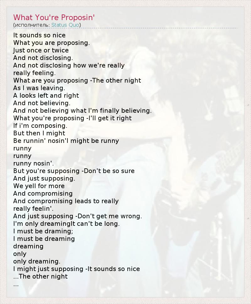 А как ты думаешь, о чем песня "What You're Proposin'" ?